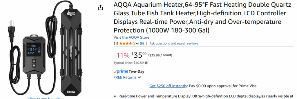 I just ran across this heater – Amazon.com: YukiHalu Aquarium Heater 50/100/200/300/500W with Protective Case, Fish Tank Heater, Temperature Adjustable, External Temperature Controller, LED Display, Used for 10/20/40/75/120 Gallons (500W) : Pet Supplies